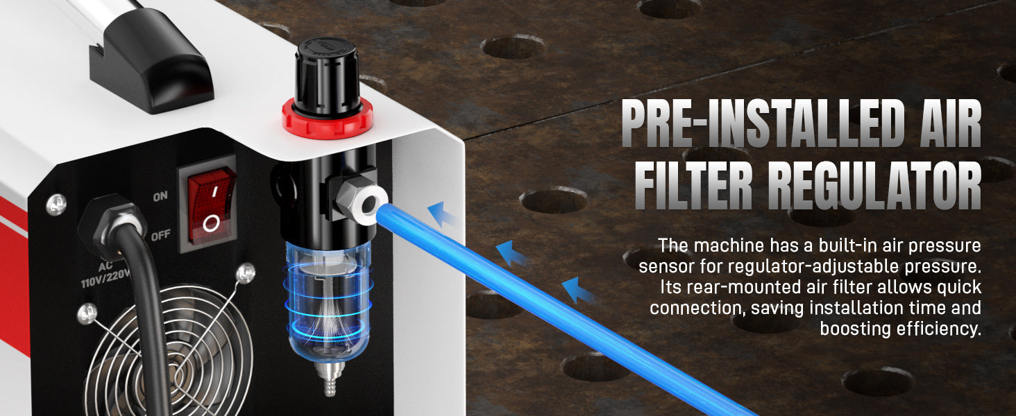 The CUT-55DS Pro features an integrated air filter regulator that ensures clean and stable airflow during operation.