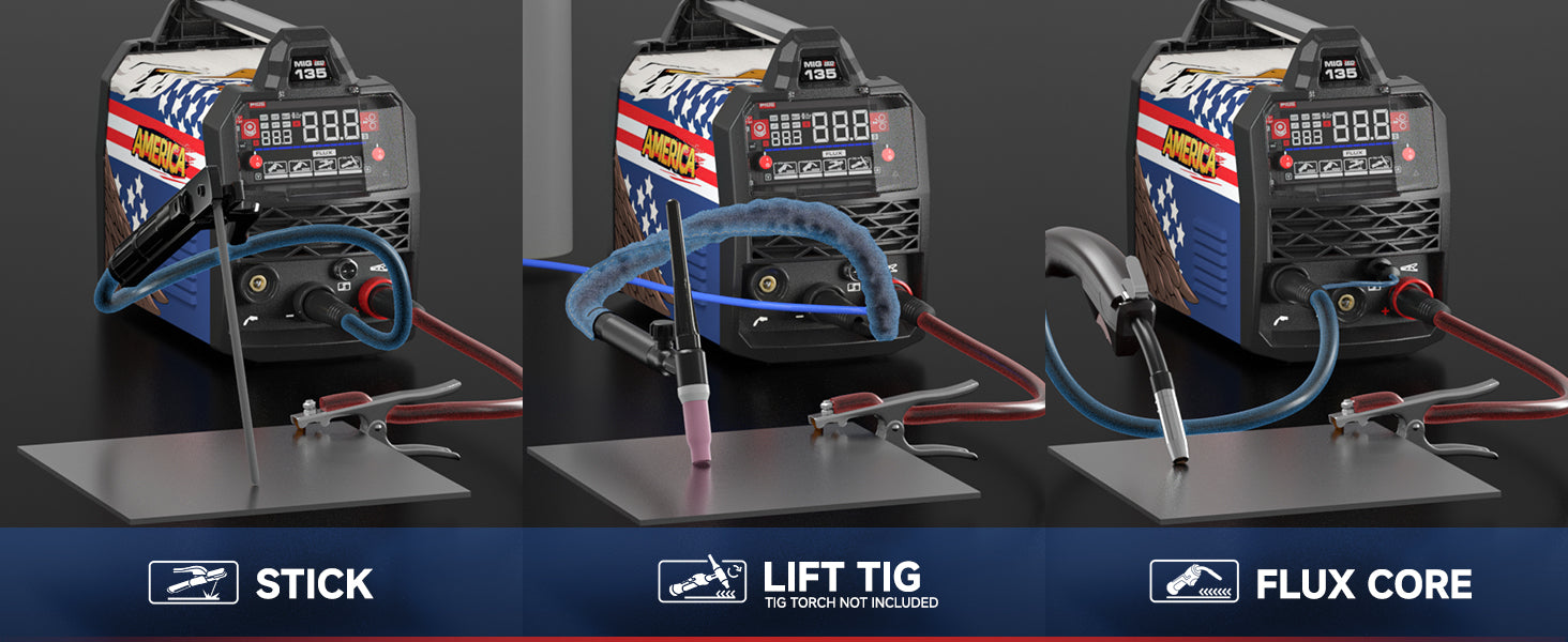 ANDELI 135A Multi-Process Welder: 3-in-1 Dual Voltage Flux Core, TIG & Stick Machine